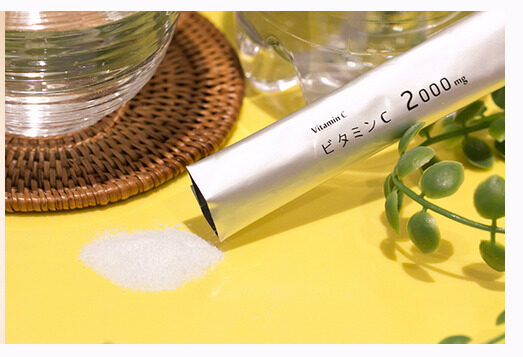 ●当院のビタミンCサプリメントは余分な成分を極力加えていない為、サラサラのパウダー状で色も真っ白です。