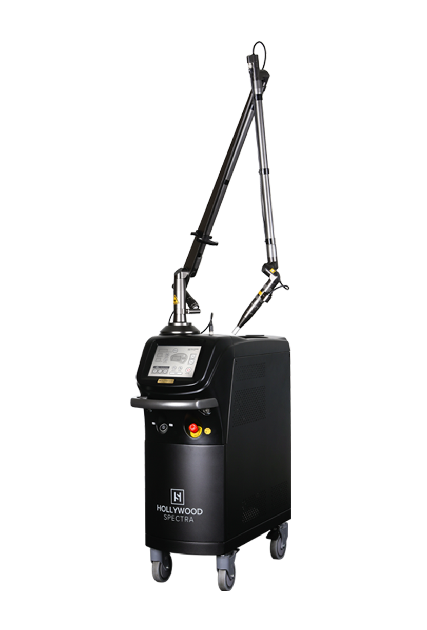 ハリウッドスペクトラは、韓国のトップメーカー「ルートロニック社」が開発した多目的レーザー治療機器です。2種類のレーザーと複数のパルスモードを使用し、従来は難しいとされていた肝斑治療やシミ、くすみ、毛穴の開き、にきび、たるみなど、さまざまな肌トラブルに幅広く効果を発揮します。特に東洋人の肌質に合わせて設計されており、しみやあざの治療、色素沈着、赤ら顔、毛細血管拡張症などの症状に効果的です。