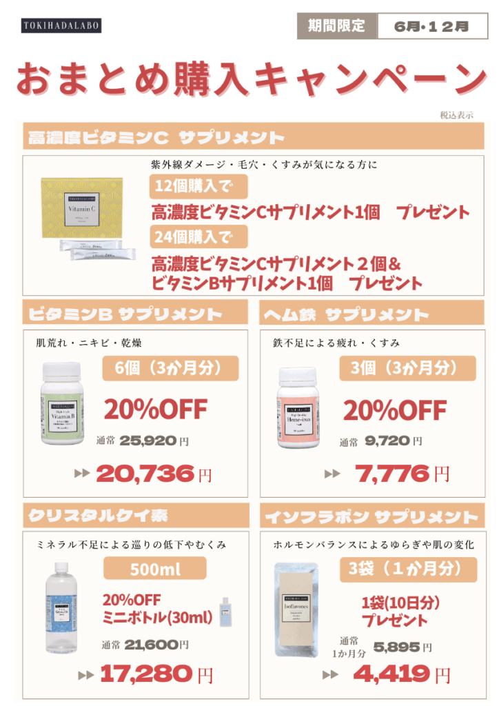 6月・12月限定のTOKIHADALABOサプリメントのおまとめキャンペーンが始まります♪